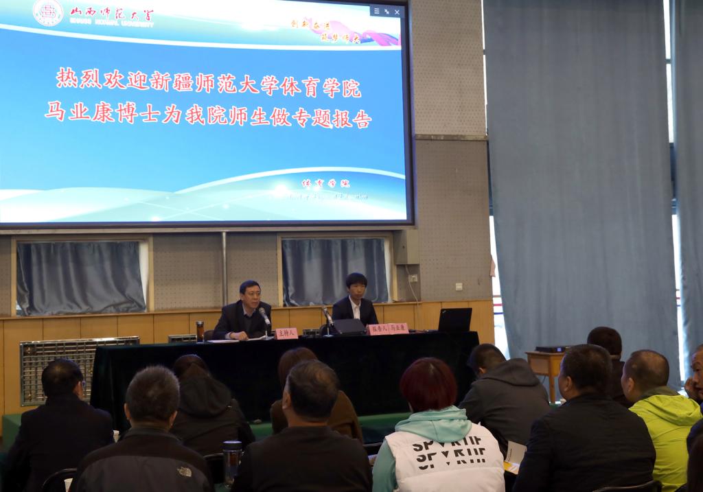 3月26日上午8:00-10:00,新疆师范大学马业康博士、副教授,应邀在7790cnm必发集团综合馆一层进行学术报告。报告由院长郑旗教授主持。7790cnm必发集团部分师生、临汾市体育运动学校教师聆听了此次报告。