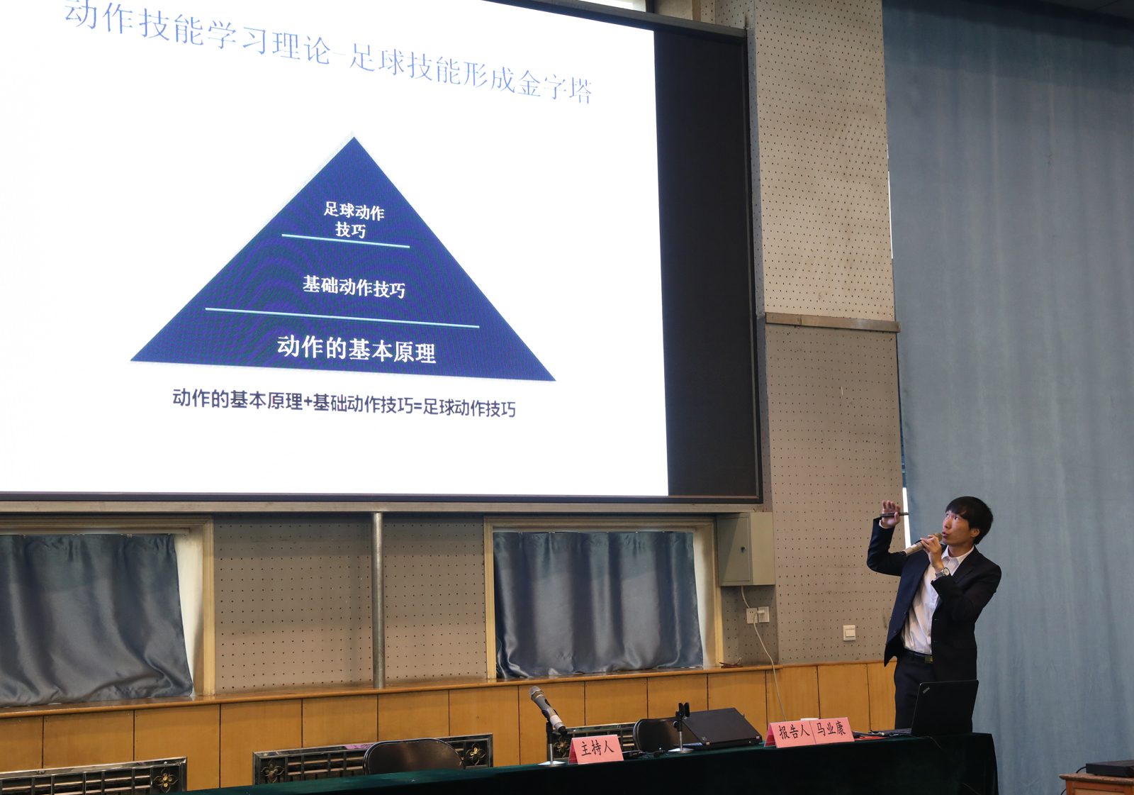 马业康博士围绕《青少年足球教学训练概念——基于开放式运动技能学习理论》这一主题,从足球运动训练的构成阶段、动作技能的控制理论,足球比赛的基本内容等多个方面指出足球等开放式运动项目在训练和教学中应注重运动员神经控制系统方面的训练,以应对球场上瞬息万变的情况。马业康博士还提供了多种练习方法,希望教师和学生在平时的教学和训练中能够多加入一些非线性和内隐性学习,以适应真正比赛的需要。报告结束后,马业康博士与在场师生进行了交流互动。