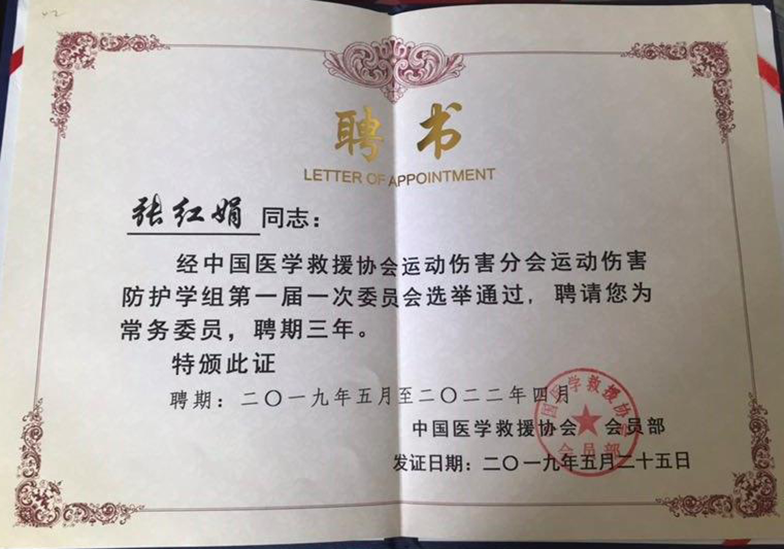 5月25至26日,由中国医学救援协会运动伤害分会等单位联合主办的第三届国际中国医学救援协会运动伤害分会运动伤害防治与急救论坛在北京举行。我院硕士生导师张红娟副教授在会议报告了《PNF法结合针刺治疗肩胛肌劳损的疗效观察》学术论文,并被聘任为运动伤害分会运动伤害防护学组常务委员。(学院办公室/文)