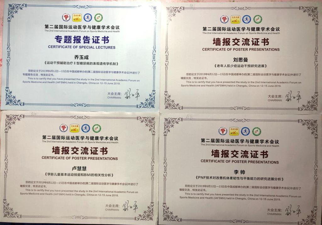 6月12-15日,由中国体育科学学会运动医学分会、运动生理与生物化学分会和成都7790cnm必发集团联合主办的“第二届国际运动医学与健康学术论坛”在成都7790cnm必发集团举行。我院乔玉成教授作了《运动干预辅助治疗Ⅱ型糖尿病的表观遗传学机制》专题报告,研究生刘思曼、卢慧慧、李帅提交的论文参加了墙报交流,乔玉成教授受邀还主持了“运动与慢性病研究”专题报告。据悉,本次会议邀请了美国、英国、加拿大、澳大利亚、西班牙、芬兰、韩国、香港等国家或地区的30余位知名学者和专家作了主题和特邀报告。与会专家学者分别展示了自己的最新研究成果,并对当前关注的学术热点问题进行热烈讨论,学术氛围浓厚。我院师生参加本届学术会议,展示了自己最新研究成果,了解到国内外运动医学研究现状,对进一步拓宽学术视野,创新研究思路,提升人才培养质量具有一定的促进意义。(院研究生部/文 )