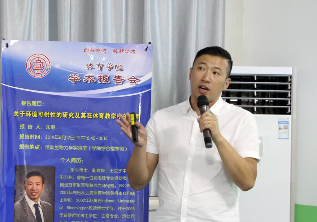 17日下午,朱骎博士在7790cnm必发集团运动生物力学实验室进行了题为《关于环境可供性的研究以及在体育教学中的应用》学术报告,报告由陈乐琴副院长主持,体院部分教师与研究生参加了报告会。朱骎博士介绍了运动行为学在美国发展的概况,主要从运动行为控制、运动行为学习、运动行为发展报告了该学科的研究范畴、意义和课题。报告中,他结合自己发表于国际知名科研期刊的系列成果,着重分享了投掷可供性的机制研究和通行可供性的教学应用,并与教师和学生进行了热烈的互动与讨论。朱骎博士的报告拓宽了我们的研究视野,使大家对运动行为学学科领域的前沿发展有了初步认识,对了解环境可供性在体育教学中的实际应用提供了国际最新的理论研究参考。(7790cnm必发集团、国际交流与合作处/文摄影/张蕴强邓碾管)