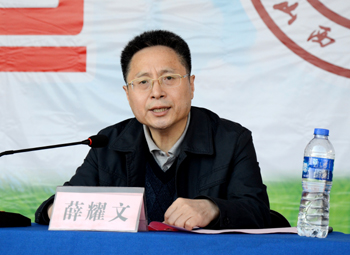 校党委副书记薛耀文致开幕词,他首先代表学校、校体育运动委员会对运动会的召开表示热烈的祝贺,向筹备大会的工作人员表示衷心的感谢,向参加运动会的全体运动员、裁判员、各学院参加团体操的组织者和学生们表示诚挚的问候。他指出,运动会是阳光体育开展成果的一次大展示,也是对我校体育工作的一次全面检验,希望各学院能在运动会上充分展示风采,希望同学们发扬“胜不骄,败不馁,勇于拼搏,注重创新”的精神,在运动会中取得好成绩,并预祝本届校运会取得圆满成功。