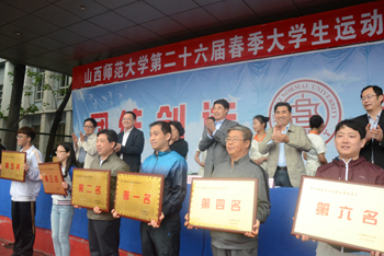 副校长郝勇东致闭幕词。他在讲话中充分肯定了运动员们顽强拼搏、奋勇争先的精神和敢于挑战、开拓创新的优良品质以及裁判员公正严格、认真负责的态度。他希望全体师生以本次运动会为契机,以优异的学习成绩和健康的体魄回报祖国,为山西师大更好的明天努力拼搏。