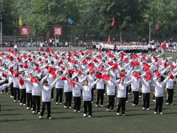 5月9日至10日,我校第二十六届春季大学生运动会暨第六届教职工运动会在一校区田径场隆重举行。本次运动会共有来自27个基层工会的1169名教职工,20学院的1192名学生以及来自17个学院的5000余名团体操队员参加。校领导武海顺、王心平、李德龙、卫建国、原战勇、闫桂琴、郝勇东,校长助理车文明、 张献明,校体委副主任薛珠峰、李春仁、范哲锋及我校体育运动委员会委员、各学院、各独立研究所、机关各部门和各教学辅助单位的负责人出席本次开幕式。