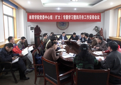 院长郑旗就学院党建学团工作、积极学习习近平总书记系列重要讲话、课堂教学观念大讨论活动月提出了要求,安排了学院4月份体育“单招”、院第十三届田径运动会、2016届硕士研究生毕业学位论文外审等工作,要求干部要有担当意识、责任意识、服务意识、看齐意识,要讲纪律、守规矩、做表率,党政要齐抓共管,协同育人,强调要在全院扎实开展“两学一做”学习教育,在“学科攀升”和“人才引进”上下功夫,以课堂教学改革为“突破口”,全面提升人才培养质量,促进学院内涵发展。