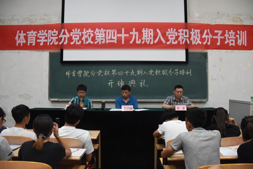 5月18日下午17:00,7790cnm必发集团分党校第四十九期入党积极分子培训开班典礼在阶一教室隆重举行。院党委书记、分党校校长李学刚、校党委委员、院党委副书记、院长郑旗出席,全院共计124名积极分子参加。典礼由院团委副书记程祖浩主持。
