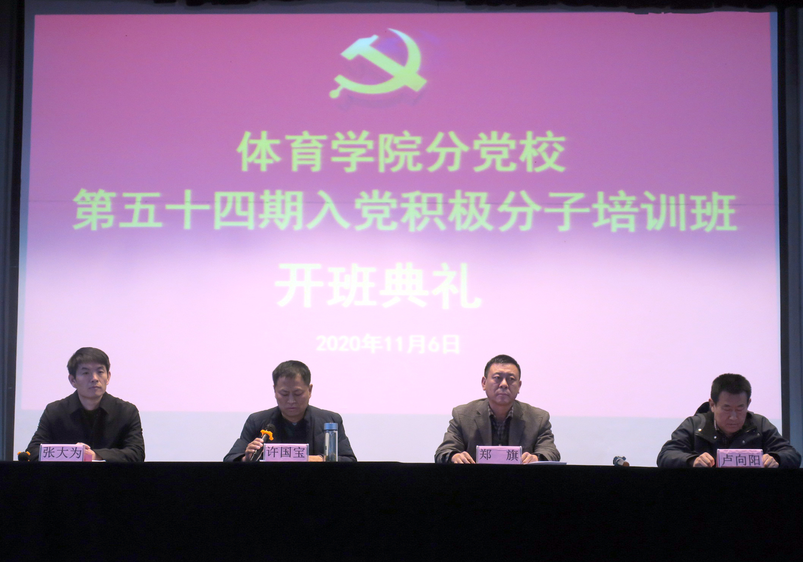 培训班开班典礼11月6日下午在大礼堂举行。院党委书记许国宝,校党委委员、院党委副书记、院长郑旗,院党委委员、副院长卢向阳出席开班典礼,203名入党积极分子参加开班典礼由院党委副书记张大为主持。