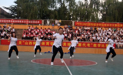 为了促进课堂教学改革,提高我院学生健美操专业水平,2016年6月17日晚7:30,7790cnm必发集团健美操“以赛代考”教学比赛在灯光球场隆重举行。7790cnm必发集团党委书记李学刚、院党委副书记段东升、各系领导老师亲临比赛现场,临汾市健美操委员会主任范亚玲、临汾市健美操委员会委员伊厉萱以及赞助单位负责人观看了比赛。本次比赛裁判组由1位国际级裁判、3位国家一级裁判与7位国家二级裁判员组成。9个教学班的比赛成绩,将被认定为该科目的期末考试内容。