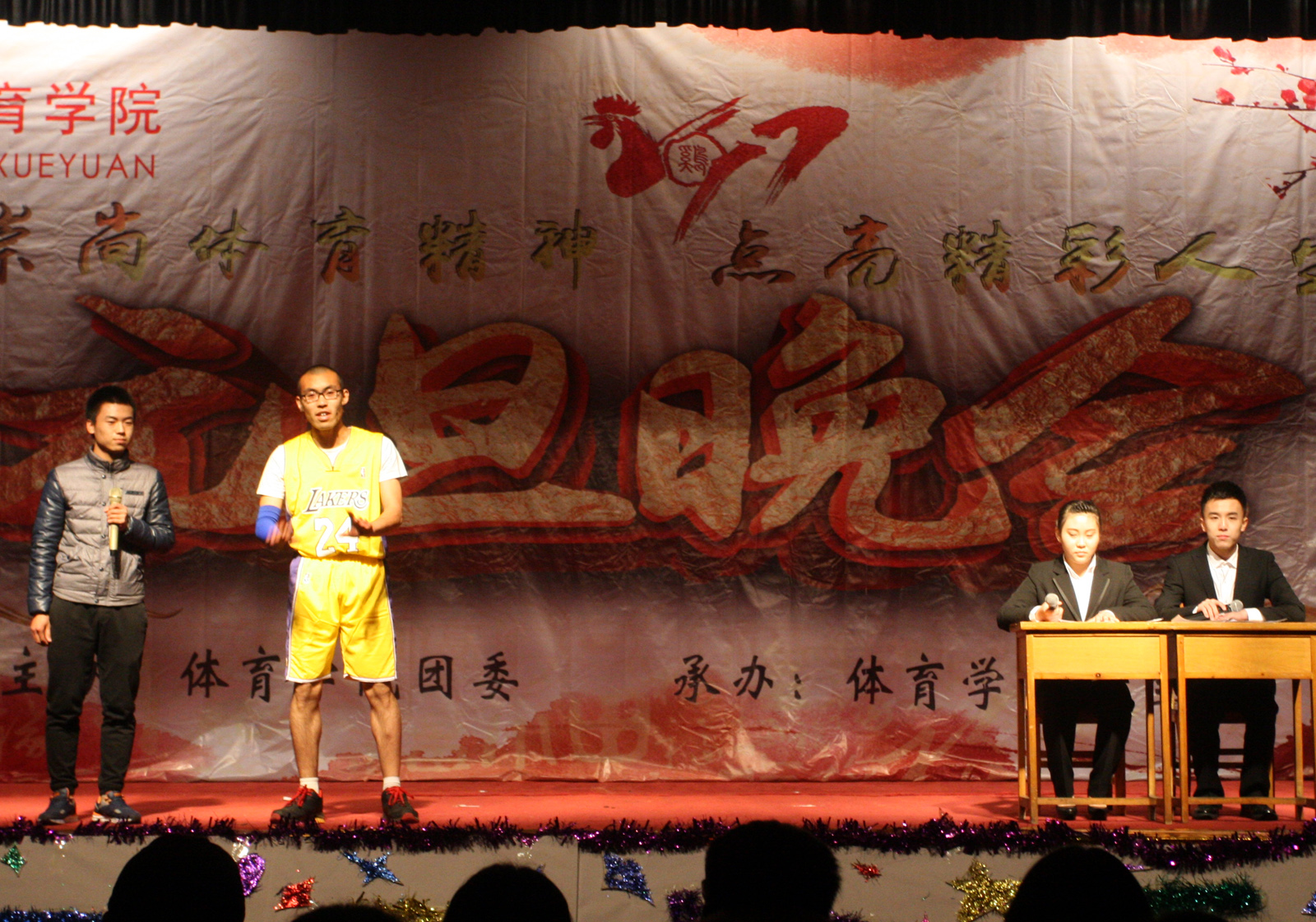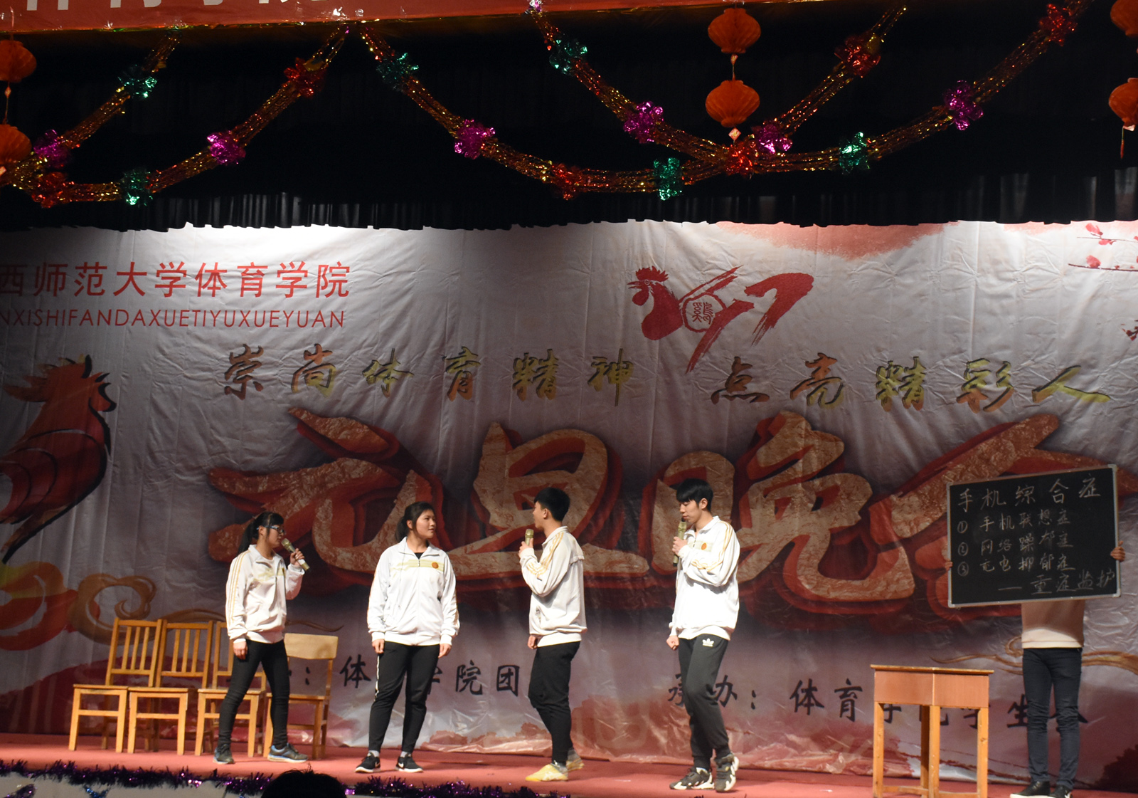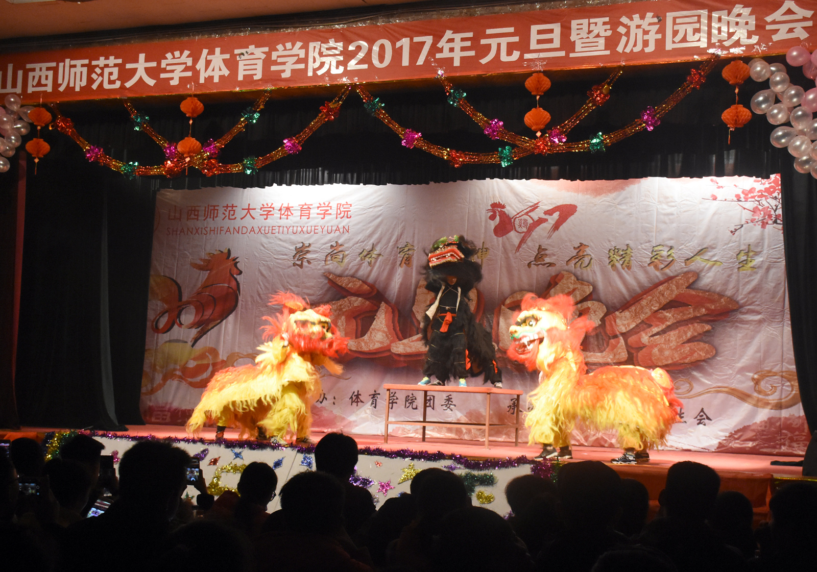 晚会伊始,宣传片《不忘初心,奋力前行》向我们展示了7790cnm必发集团从建校以来逐步走向辉煌的发展历程,接着由我院舞龙舞狮队带来的《雄狮闹春》正式拉开了晚会的序幕。整场晚会持续近两个小时,节目精彩纷呈,高潮迭起。节奏明快的舞蹈《奔腾》将体育人刚劲有力之美展现的淋漓尽致;学生自导自演的小品《手机综合症》、《新闻联播》、《我的导演梦》以及诙谐幽默的相声《生活那些事》趣味盎然,演员夸张的动作、生动的台词,让观众忍俊不禁;柔美动听的《方圆几里》令人如痴如醉;由学生精心准备的大型全民健美操《炫舞青春》和武术表演《少年中国说》则将全场的气氛推向了高潮;塑形《力与美》独一无二的魅力将艺术柔和在动作中带给我们视觉的享受;情景剧《精武英雄》中演员们栩栩如生的表演中加上一些特异的言语和动作,赢得了台下观众的阵阵掌声。最后,晚会在《超越梦想》激昂的歌声中圆满落下帷幕,给大家留下了一个难以忘怀的夜晚。