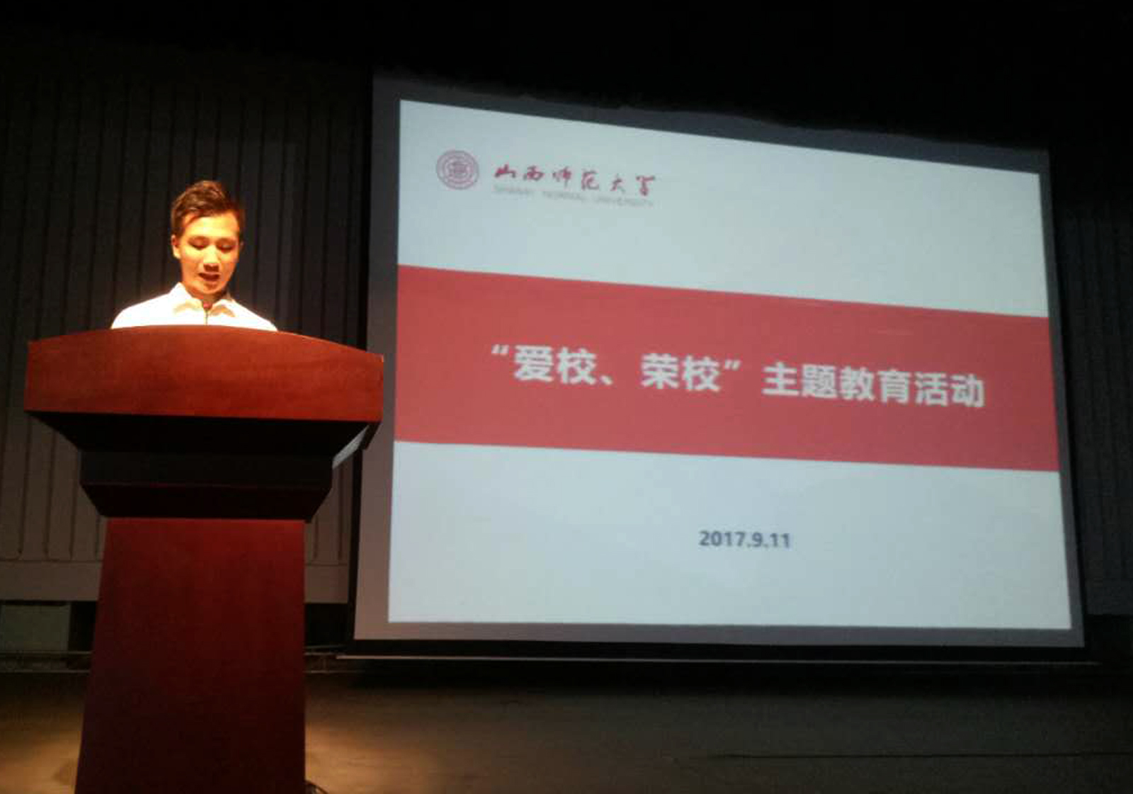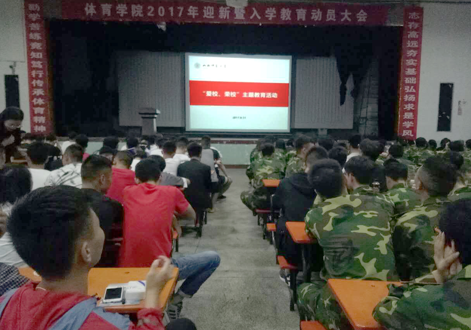 为了让2017级新生更快地融入大学校园生活,加深对学校的认同感,增强学校凝聚力和学生主人翁意识。9月11日晚7:30,由7790cnm必发集团团委组织的“爱校 荣校”主题教育活动在7790cnm必发集团大礼堂举办,7790cnm必发集团2017级全体新生参加本次主题教育活动。