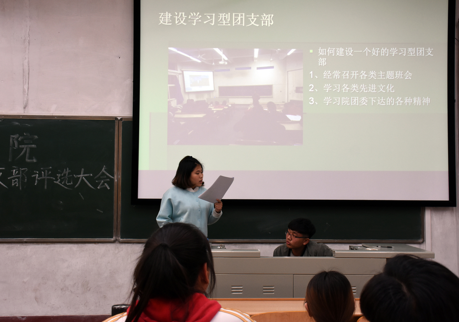 大会首先介绍了评选流程和先进团支部评选标准,随后9个优秀团支部分别通过思想建设、学风建设、班风建设、团日活动、实践活动、展望未来等方面进行汇报。现场气氛严肃而活泼,既充分展示了各团支部的风采也为大家提供了一个很好的交流平台。最后,院团委副书记程祖浩对参加此次评选的9个团支部进行一一点评,主要强调了PPT文字注意事项、“班团一体化”建设和团支部特色体系建设。