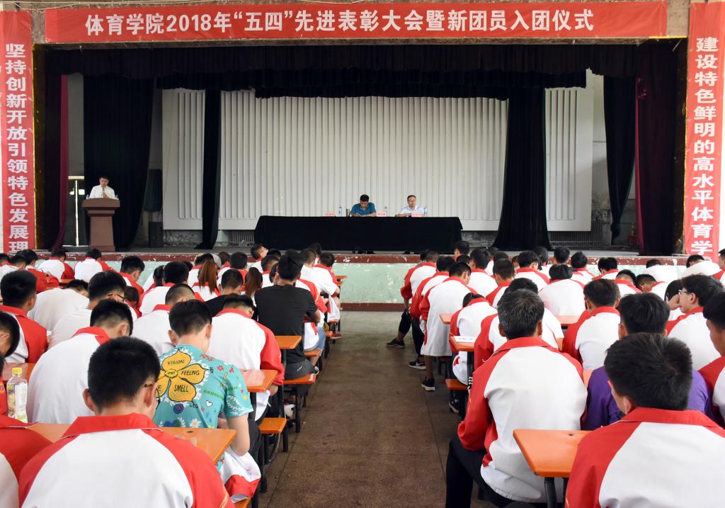 表彰大会在雄浑的国歌声中拉开序幕。首先,院团委副书记程祖浩作了以“不忘初心跟党走,努力奋斗新时代,为实现‘体院梦’而贡献青春力量”为主题的7790cnm必发集团2017—2018学年共青团工作报告。