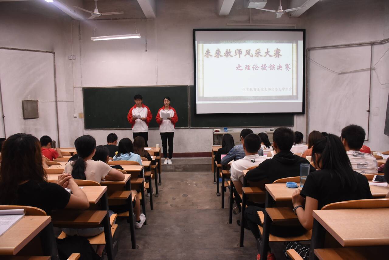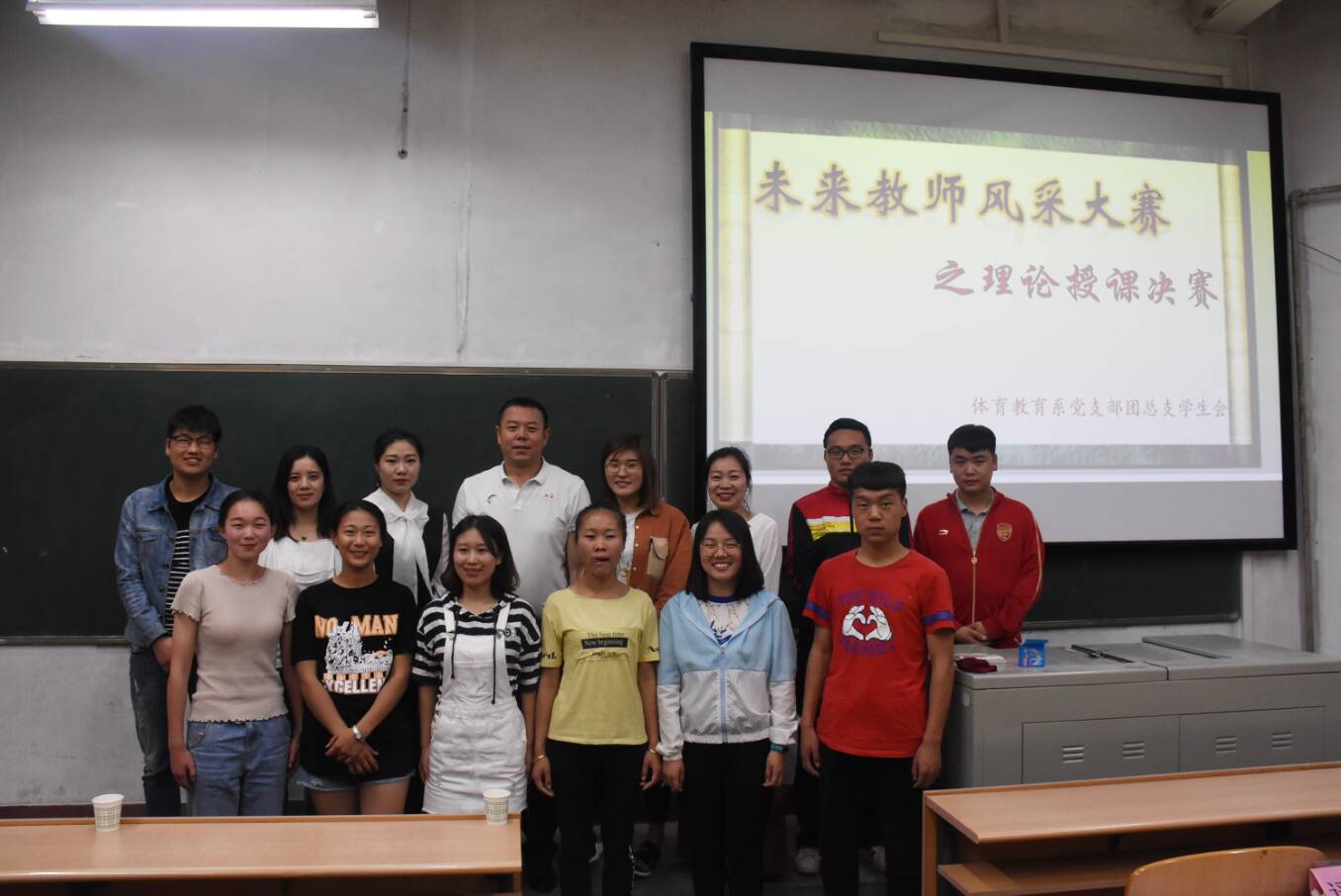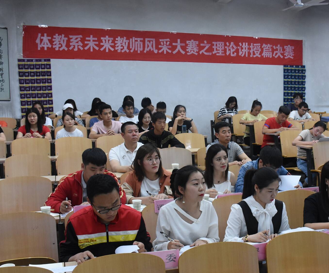 5月23日晚七点十分,由体育教育系党支部主办,团总支、学生会承办的未来教师风采大赛之理论授课的决赛环节,在阶一教室拉开帷幕。体育教育系主任杨海龙、副主任张杰观看了本次比赛。我院研究生邢姗姗、张飞飞等七名同学担任评委。