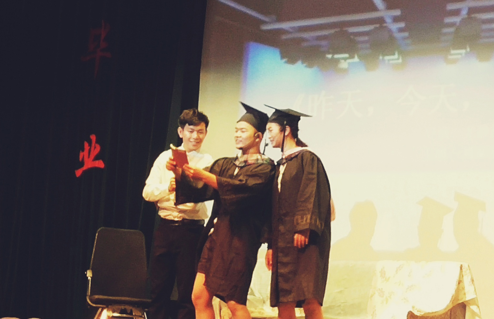 最后,大四辅导员黄志高老师以及大四全体学生登台。首先由黄老师讲话,他祝愿学子们要把这次别离当作新的开始,勇敢的踏上新的征途去努力实践。话语中透露着深深地不舍;接下来由学生代表讲话,一日为师,终生为父,同学们表达了对高老师的祝愿和感谢,千言万语无尽诉,情到深处自然浓,温情的场面不禁使人潸然泪下。大家用自己的方式表达和纪念自己的青春!最后一首大合唱《不说再见》,感谢相遇,感谢一路有你。
