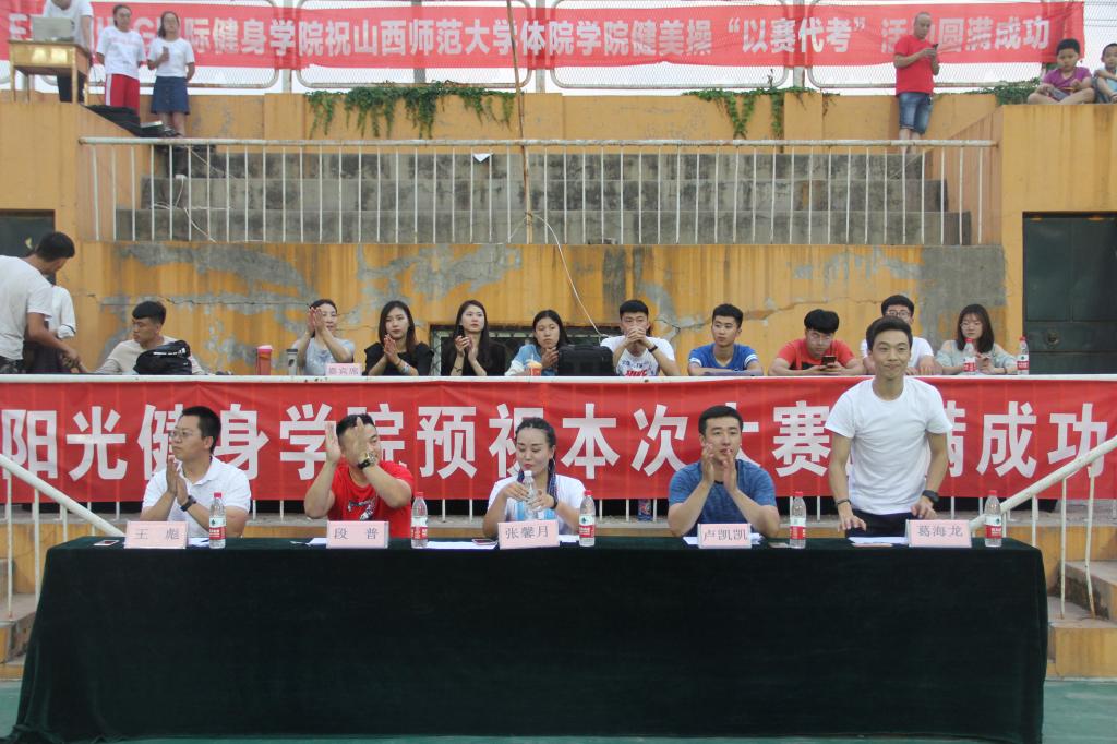 本次比赛裁判组由必发集团welcome欢迎光临实验中学健美操主教练国家一级裁判、全国优秀教练员山西省优秀裁判员教练员王彪;临汾市总工会健身协会会长、阳光健身学院创始人兼培训师、国家二级裁判员张馨月;临汾市总工会健身协会秘会长、阳光健身学院联合创始人集院长、泰美健身教授花园店店长段普;FEELING国际健身学院运营、 FEELING国际健身学院创始人卢凯凯;FEELING 国际健身学院培训总监、FEELING国际健身学院金牌导师葛海龙5人组成。本次健美操“以赛代考”教学比赛共有26支参赛队伍。