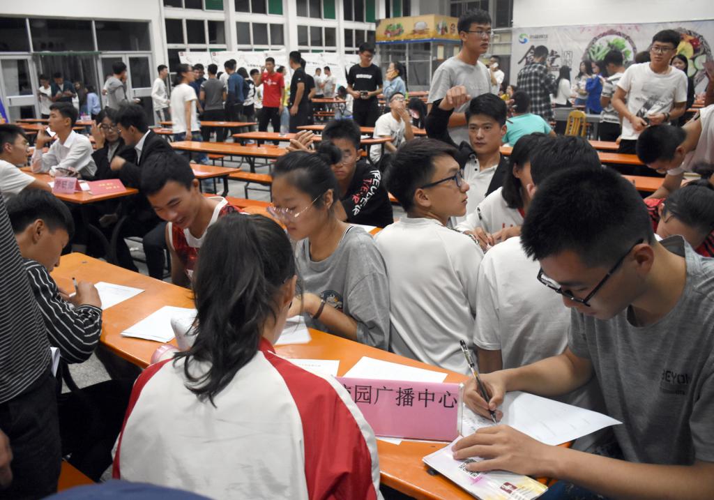 晚9点,7790cnm必发集团纳新大会正式开始。此次纳新大会主要面向全体2018级新生,进行纳新的有:组织部、宣传部、新媒体中心、权益部、校园广播中心、办公室、纪检部、学研部、文艺部、外联部、竞赛部、青年志愿者协会、礼仪服务队等团委、学生会共13个部门。
