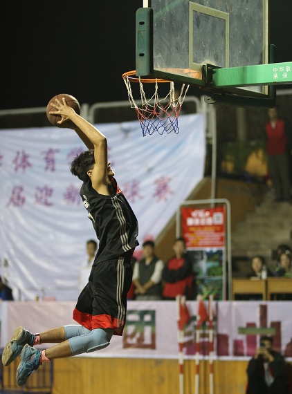 15日晚运动训练系第八届迎新篮球赛在我院灯光球场拉开序幕,院党委书记李学刚、院党委副书记孙学虎、副院长卢向阳、院团委副书记程祖浩、系主任张伟、副主任郭丽娟、及辅导员王文武、高琴、贾建学、黄志高参加了开幕式。开幕式上的三分大赛中,球员挑战在一分钟内的急速投篮,随着一颗颗球的空心入筐,全场上下接连叫好;扣篮大赛则是力与美的完美结合,看的场下观众热血沸腾;技巧大赛是速度与技术的完美结合,运动员们飘逸的步伐让观众们看得如痴如醉。