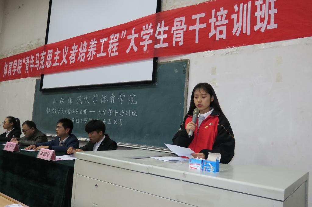 随后,院团委副书记程祖浩老师给同学们介绍了“青马工程”的日程安排,包括理论学习、素质拓展、社会实践、交流研讨、志愿服务等5大内容。随后,青马学员代表郝承宁、徐子泓先后进行了发言,号召同学们用饱满的热情参加“青马工程”的各项培训。