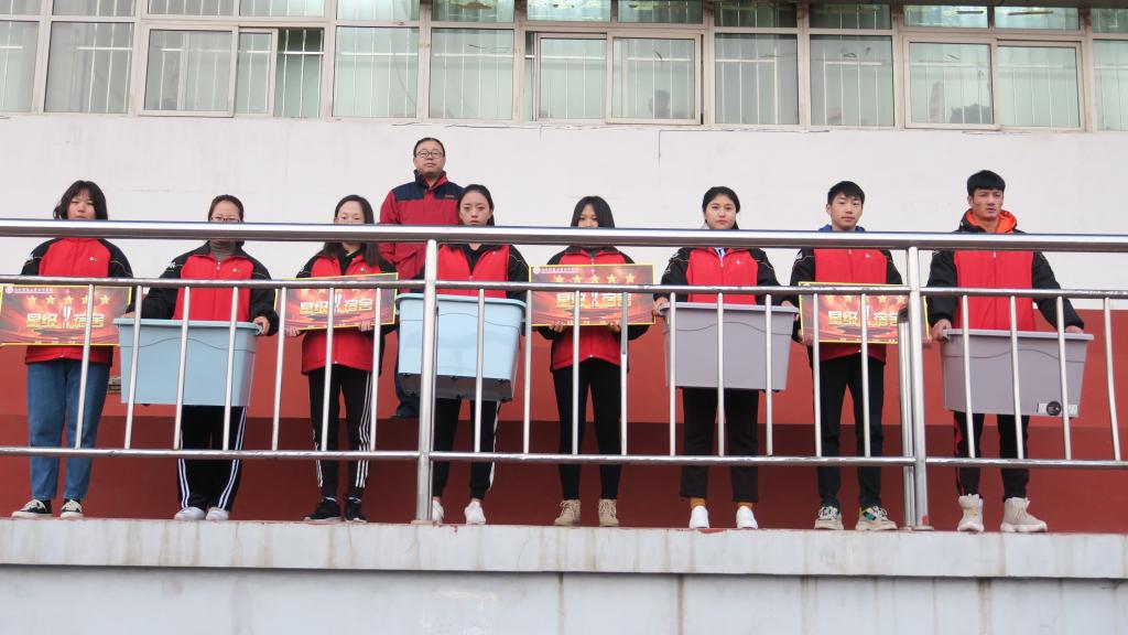 在此次评选中,22个宿舍各有特色。由院学生会纪检部及各系纪检部负责人组成的评委,走进宿舍评比并对22个宿舍进行逐个现场评分,对各宿舍出现的不足提出了改进意见。随后,22个宿舍进行了微信投票评选,各寝室同学积极参与到投票过程中来,为自己心仪的宿舍投上宝贵的一票。最终,评选出十个优秀宿舍,四个三星级宿舍,四个四星级宿舍,四个五星级宿舍。11月12日在田径场,早操升旗结束后,院党委副书记孙学虎和各系部科室主要负责人为获得荣誉的宿舍进行了颁奖。