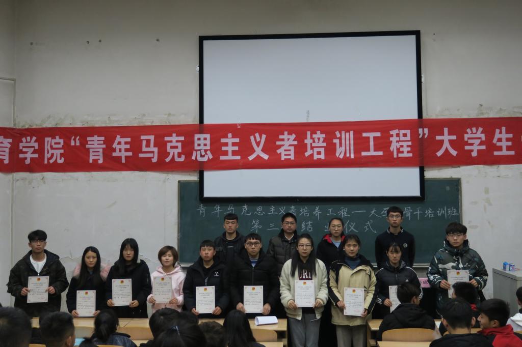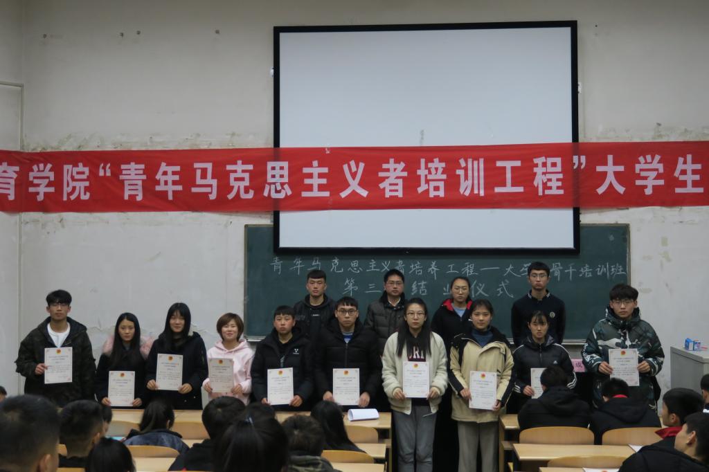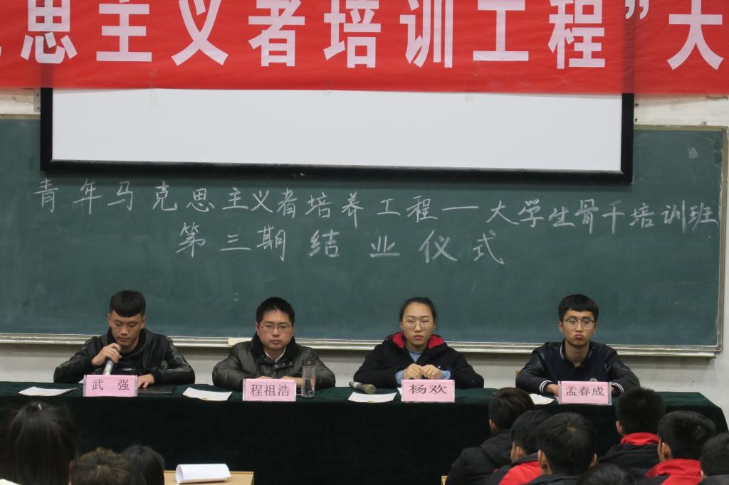 12月20日晚上7:30,7790cnm必发集团青年马克思主义者培训班——大学生骨干培训班的结业仪式在阶一教室召开。院团委副书记程祖浩老师出席;院学生会副主席兼社团联合会主席武强、院学生会副主席孟春成以及全院120名团学骨干参加。本次会议由学生团委副书记杨欢主持。