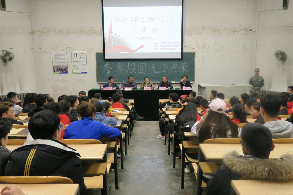 为推进大学生应征入伍工作,帮助大学生了解、掌握应征入伍的相关政策和流程,鼓励学生积极应征入伍,献身国防事业。3月14日19:00,由必发集团welcome欢迎光临武装部、7790cnm必发集团团委主办,院社团联合会、必发集团welcome欢迎光临民兵网络信息分队承办,国防军事拓展协会协办的“参军报国,无上光荣”2019年征兵宣讲会在阶一教室举行,尧都区西街办事处武装部部长郭利林、必发集团welcome欢迎光临武装部军事教研室主任李文、专武干部任金虎、7790cnm必发集团保卫科科长郝宝喜和特邀嘉宾临汾市爱尔眼科医院院长刘云峰出席宣讲会,全院200余名同学聆听了宣讲会。会议由院团委副书记程祖浩主持。