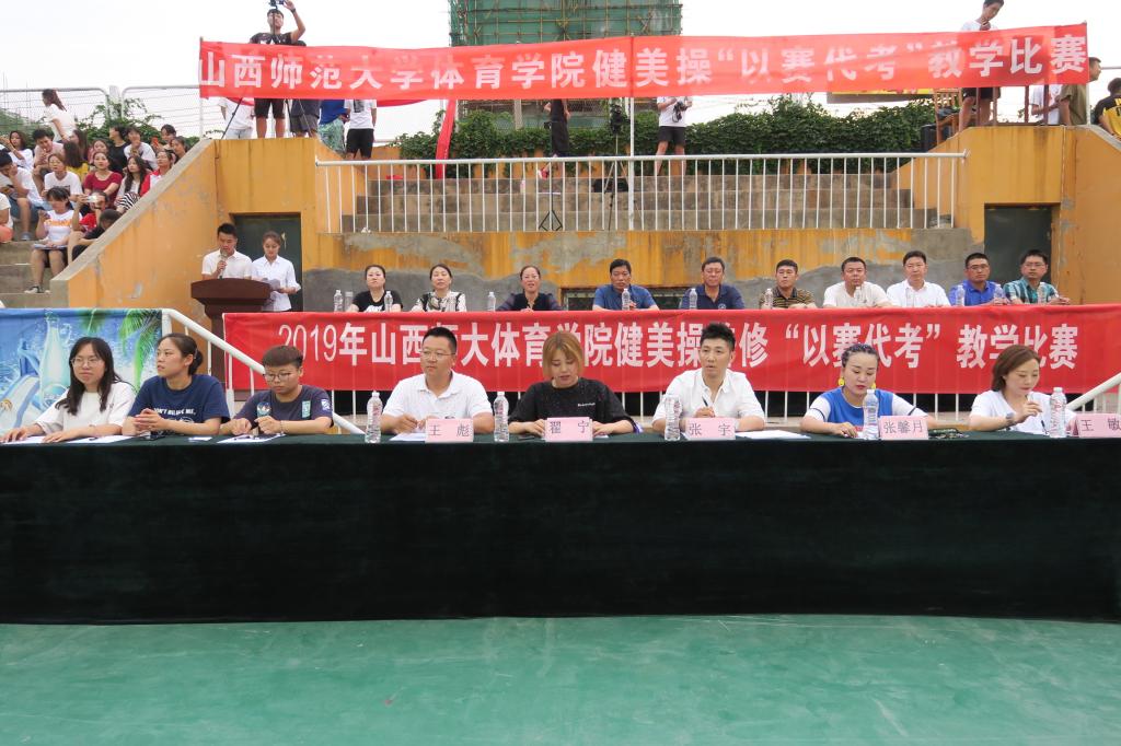 担任本次比赛的评委老师有必发集团welcome欢迎光临实验中学健美操主教练、国家一级裁判、全国优秀教练员、山西省优秀裁判员教练员王彪;临汾市总工会健身协会会长、阳光健身学院创始人兼培训师、国家二级裁判员张馨月;山西健身健美操协会委员、山西爱尚健身学院创始人、健美操一级裁判张宇;临汾市啦啦操委员会委员、国家一级啦啦操裁判员、教练员全国优秀教练员、2010年7790cnm必发集团首届以赛代考第一名获得者崔宁。此外健美操国家级裁判、健美操以赛代考发起人郭丽娟老师;健美操精品课程负责人、健美操一级裁判张秀珍老师;健美操一级裁判、啦啦操技术银牌导师王红芳老师担任了本次比赛的高级裁判组。本次健美操“以赛代考”教学比赛共有27支参赛队伍的300余名同学参加。