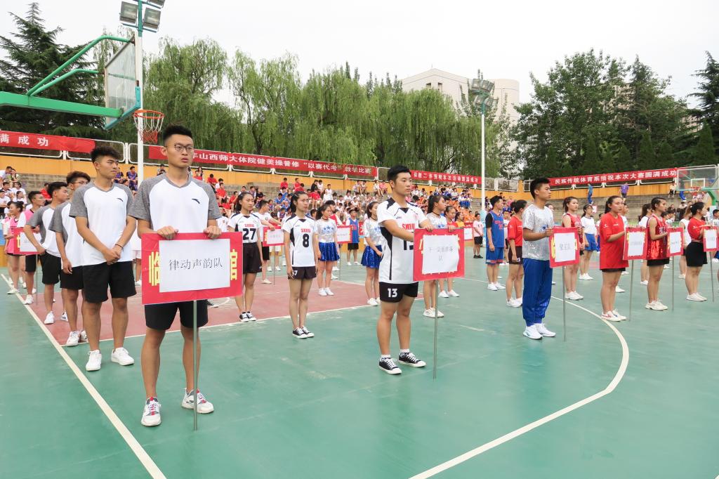 比赛开始前,由全体运动员和评委老师带了一段开场表演,随后社体16级健美操专修班带来的踏板操表演中拉开比赛序幕。各参赛队按照事先抽签所定顺序,依次出场进行比赛。各班参赛队员身着动感服装闪亮登场,伴随着动感音乐响起,精美的开场造型震惊全场。在坐的同学们欢呼雀跃,加油助威声一阵接着一阵,此起起伏。跳跃的音符,演奏着青春的活力,动感的舞姿,展现着青春的魅力。