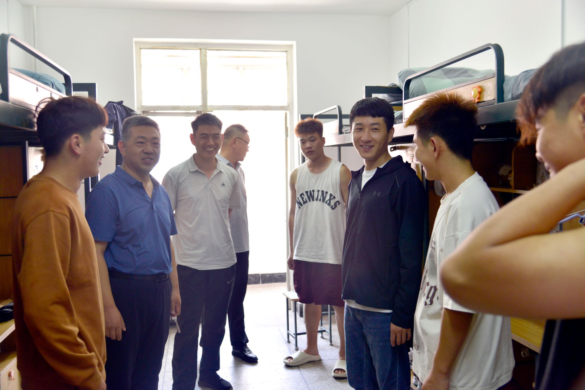 在学生宿舍,学院领导老师亲切地与新生进行了交谈,询问了同学们生活、住宿以及家庭状况、兴趣爱好等,并仔细查看了宿舍的各种设施。院领导指出,同学们来自五湖四海,缘聚师大,要珍惜彼此之间的友谊,团结友爱、互帮互助,做到德智体美劳全面发展,成为对国家、社会有用的高素质应用型人才,为体育强国建设作出更多更大的贡献。