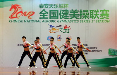 2014年4月1日至6日,由国家体育总局体操运动管理中心、中国健美操协会主办的2014泰安天乐城杯全国健美操联赛在山东泰安拉开帷幕,来自全国69支代表队600余名运动员参加了本次大赛。