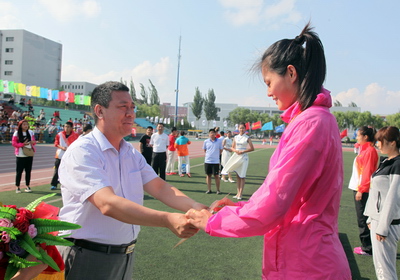 副校长、校体育代表团团长闫桂琴在开幕式主席台上 |