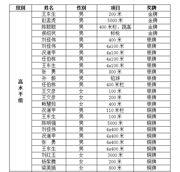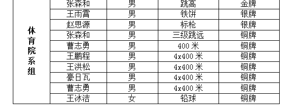 附:我校参加省第21届大中学生田径运动会奖牌获得者统计