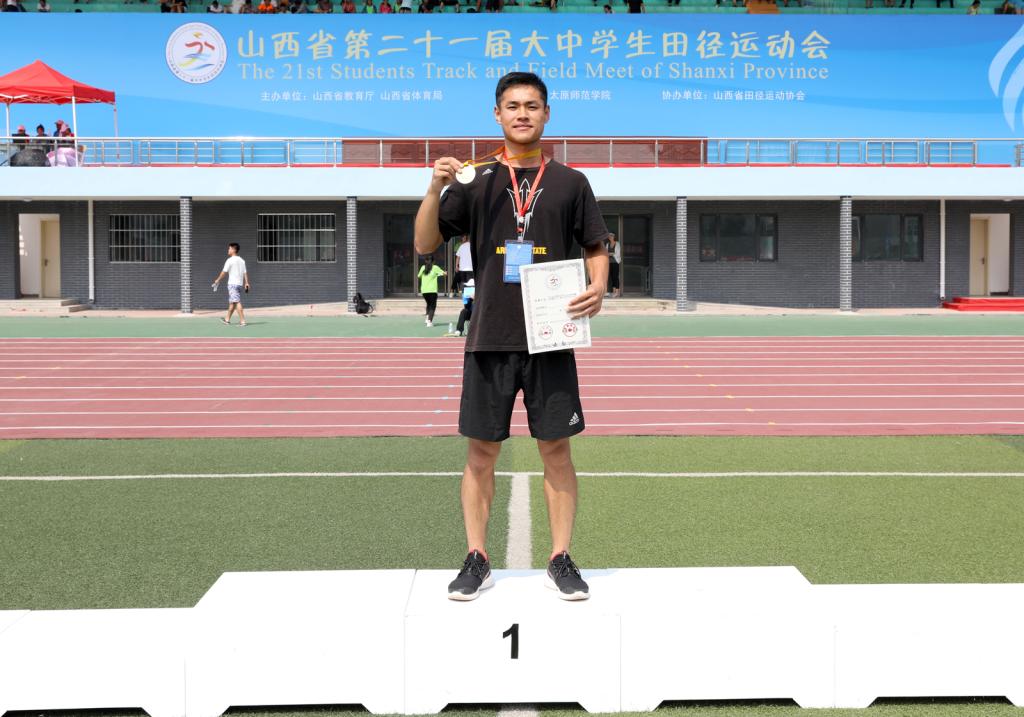 7月18日至22日,由山西省教育厅和山西省体育局主办的山西省第21届大中学生田径运动会在太原师范学院举行。经过5天的苦战,我校田径健儿在比赛中斩获金牌6枚、银牌10枚、铜牌11枚,取得高水平组团体总分第三名、体育院系组团体总分第五名的好成绩,并获得“体育道德风尚奖”。其中来自社会体育指导与管理专业的学生张森和跳高破我校最高纪录,以2.02米的好成绩夺得金牌,并荣获国家一级运动员称号。