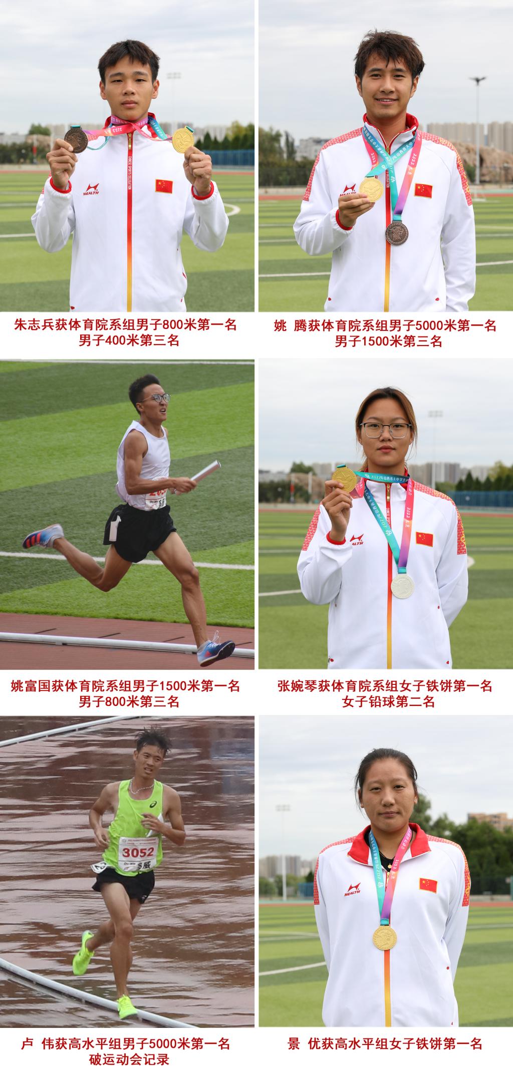 8月17日至21日,由山西省教育厅和山西省体育局主办的2022年山西省大中学生田径锦标赛暨山西省第二十二届大中学生田径运动会在山西财经大学举行。经过近1个月的艰辛备战、4天的努力奋战,我校田径队在比赛中勇获金牌6枚、银牌5枚、铜牌9枚,取得高水平组团体总分第三名(女子、男子团体总分分获第二、三名)、体育院系组团体总分第三名(男子、女子团体总分分获第二、七名)的佳绩。其中来自运动训练专业的卢伟、伍二清破高水平组男子5000米赛会纪录,分别获得金牌、银牌,运动训练专业的贺瑞青破高水平组女子3000米赛会纪录并获得铜牌;体育教育专业的姚腾、姚岩松分别获得体育院系组男子5000米金牌、银牌,体育教育专业的姚富国、姚岩松、姚腾分别获得体育院系组男子1500米金牌、银牌、铜牌,体育教育专业的朱志兵、姚富国分别获得体育院系组男子800米金牌、铜牌,运动训练专业的景优获得高水平组女子铁饼金牌,体育教育专业的张婉琴获得体育院系组女子铁饼金牌。