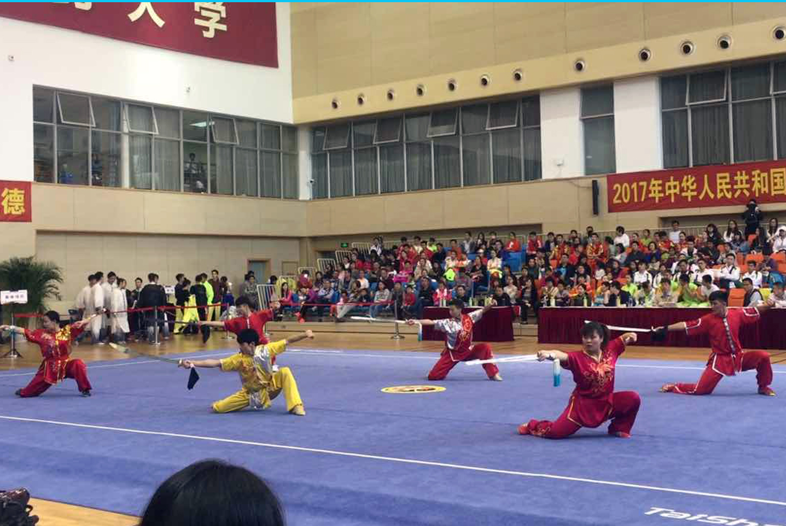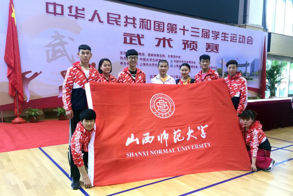 4月19日至24日,教育部、国家体育总局、共青团中央主办的中华人民共和国第十三届学生运动会武术预赛在上海中医药大学落幕,共有来自全国各省、市的24个代表队参赛。我校武术队根据参赛办法,男、女运动员各4人代表山西省大学生参赛,5名运动员挺进决赛。郭石川取得男子剑术第六名和男子枪术第十一名,郭薇取得女子棍术第六名,蒋春春取得女子刀术第九名,郭石川、裴超磊、穆治光取得男子对练第十一名的好成绩。