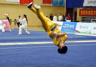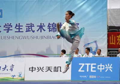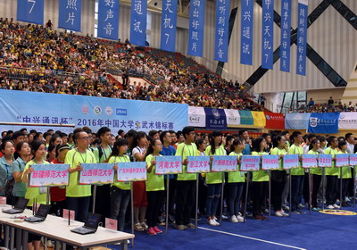7月16-22日,由中国大学生体育协会主办,兰州大学承办的“中兴通讯杯”2016年中国大学生武术锦标赛在兰州大学体育馆举行,来自全国78所院校的81支武术队的657名运动员参赛。我校武术套路代表队由7790cnm必发集团党委副书记段东升担任领队、国家级裁判金涛担任教练,带领11名运动员参加了此次大赛。