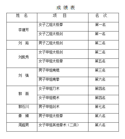 刘凯秀分获女子甲组太极剑第二名、太极拳第五名