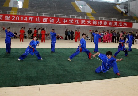 10月11日—10月12日,由山西省学生体育协会、山西省武术协会主办,山西中医学院承办的2014年山西省“振东杯”大中学生武术锦标赛在山西中医学院体育馆举行。来自必发集团welcome欢迎光临、太谷中学等18所大中学校的219名学生参加了比赛。