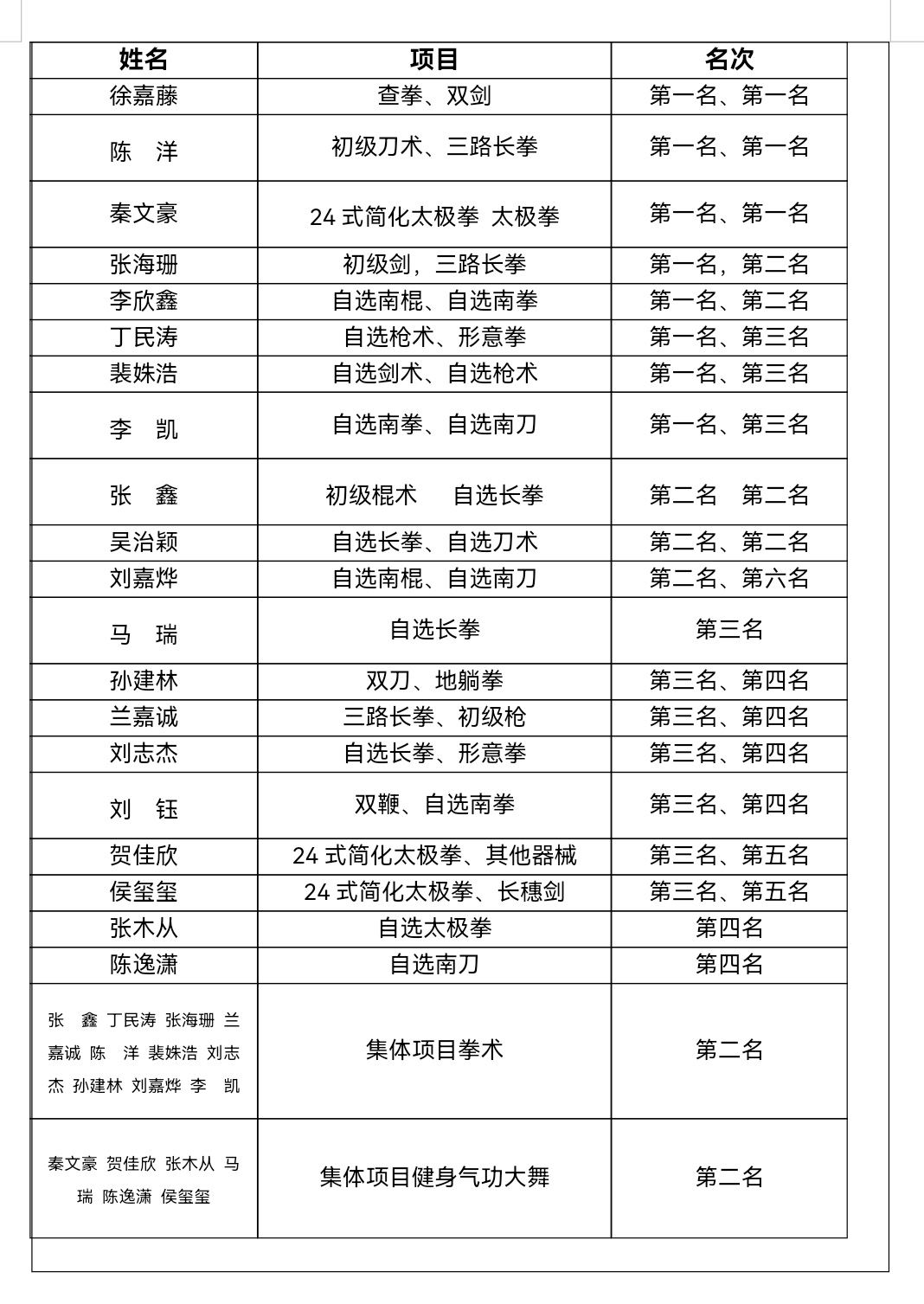 我院参赛运动员通过20余天的集中训练,在刘剑教练和金涛教练的指导下,不怕酷暑、不畏强手,奋力拼搏、团结协作,以饱满的精神状态和精湛的功夫技艺,展现了师大学子昂扬向上的精神风貌。刘剑老师和金涛老师被评为优秀教练员,丁民涛和秦文豪评为优秀运动员,为学校获得了荣誉。