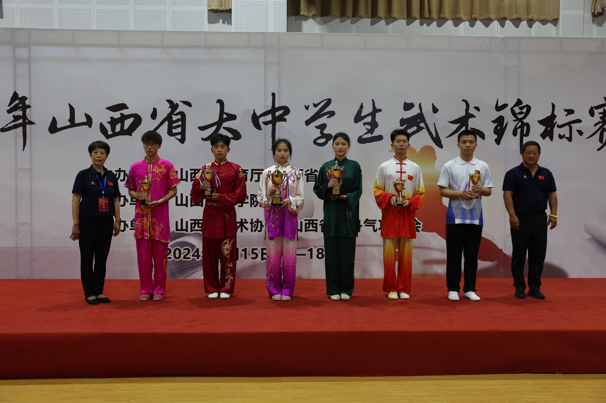 2024年7月15日——18日,山西省大中学生武术锦标赛在山西工商学院武术馆隆重举行。我院武术代表队20名运动员在学院王江副院长、主教练刘剑和金涛教练带领下参加比赛,共获得团体总分第二名和个人单项金牌总数第一名的优异成绩,其中金牌11枚,银牌7枚,铜牌10枚。