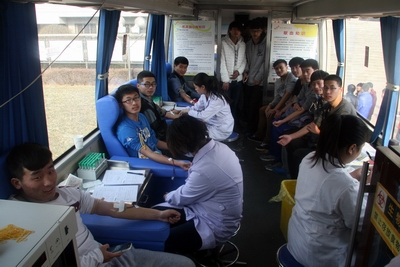 随着血站工作人员的准备工作结束,10时30分,采血工作正式开始,虽然已经是严寒季节,但丝毫也挡不住我院学子们的前来献血的热情。同学们在献血车前排起了长龙,虽然许多学生都是第一次献血,但大家没有任何的紧张感,显得格外兴奋。等候献血的学生们则留在教室里填写登记报表。中心血站还精心准备了牛奶等饮品,帮助献血的同学们迅速补充体力,减少身体不适。