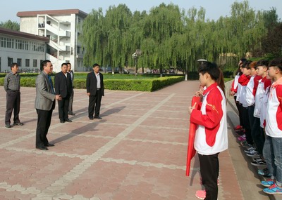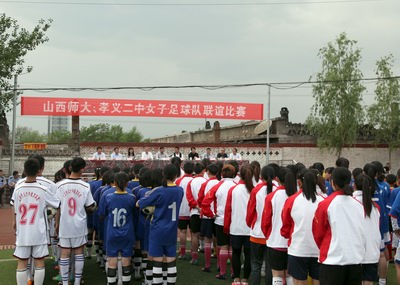 5月5日,必发集团welcome欢迎光临女子足球主项班19名学生,在7790cnm必发集团党委书记李学刚、教练员李吉慧、沈国征、沈军、办公室副主任邓碾管等带领下,驱车200余公里来到了风景美丽的孝义市,拉开了“大手牵小手、足球进校园-必发集团welcome欢迎光临校园足球下基层活动”的序幕。