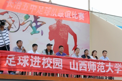 下午十六时,长治市教育局基教科科长王春明、省中学生体育协会负责人邓建成、长治市体育总会、足球协会秘书长李健、长治第五中学校领导刘燕、刘振刚等出席了在长治五中足球场举行的启动仪式,现场参与人数近1500人。长治五中副校长刘振刚高度评价了我校校园足球下基层活动对长治市中小学足球活动开展的推动作用和影响力。李吉慧教授介绍了我校开展校园足球下基层活动的情况及其校园足球作为学校体育和现代教育的组成部分回归育人的意义。长治五中副校长刘燕为比赛开球,场上运动员勇猛顽强、奋力拼搏,场下观看群情激奋,欢声雷动,气氛热烈而欢快。比赛在浓浓的友谊与情感交流中顺利结束,我校女足队员展示的良好足球技艺及精神风貌给现场观众留下了深刻印象。