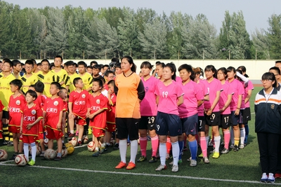 我院女子足球主项班在院教学指导委员会主任李吉慧,教练员沈国政、沈军老师指导下,同长治第五中学校男子足球队进行了一堂公开训练课,相互交流了训练大纲、训练方案和方法,进一步加深了我们对基层学校足球业余训练现状的了解。