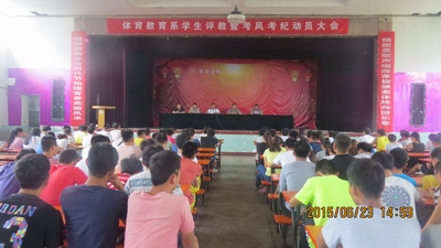 2015年6月23日下午3点,体育教育系在大礼堂召开了学生评教暨考风考纪动员大会,参加会议的有体育教育系主任杨海龙、副主任张杰、以及体育教育系辅导员及全体同学。