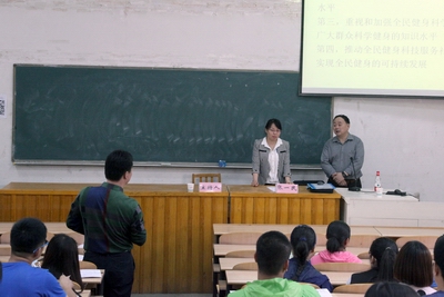 张一民教授以国务院下发的《全民健身计划纲要》、《全民健身条例》、《全民健身计划(2011-2015)》、《关于加快发展体育产业促进体育消费的若干意见》等做为政策研究背景,从全民健身计划纲要科技工程(1995-2000)、“全民健身计划纲要二期工程”科技行动计划(2001-2010)、科技支撑全民健身计划(2011-1015)、全民健身保障健康(2016-)四个部分全面系统地解读了“全民健身计划”的发展历程及核心内容。与此同时给师生阐述了从“九五”到“十二五”期间全民健身主要科技成果和以及在科技成果转化中存在的主要问题,以及且为更好地贯彻这一计划提出一系列的具体发展目标。报告结束之际,张一民教授与师生进行了互动交流,对大家所提出的问题一一耐心解答,并为提问的老师与学生提供或推荐相关资源共享。