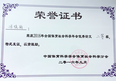 我院社会体育系教师冯晓丽的论文《利益相关者视角下体育社会组织内部治理机制研究》荣获2016年全国体育社会科学年会优秀论文二等奖,并进行了大会专题报告,同时还应邀主持了第六场专题报告会。