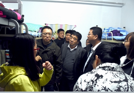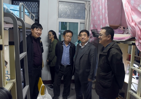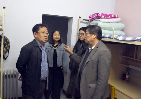 10月25日下午,校长卫建国、副校长王云和相关职能部门负责同志一起来到我院,在学院领导陪同下深入研究生学生宿舍,听取同学们对住宿情况的反映。针对我院部分研究生宿舍存在的隔音效果差、潮湿等问题,进行现场办公。
