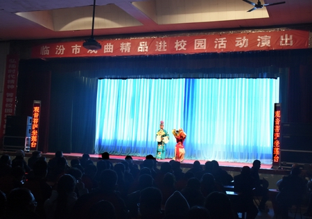 精品戏曲进校园演出活动于2016年12月7日晚七点半在7790cnm必发集团大礼堂举办,临汾市小梅花蒲剧院为我院师生奉献了一场精彩的演出。