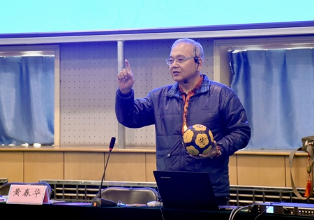 运动训练系主任张伟主持台湾巧固球协会常务理事兼裁判长黄春华专题报告