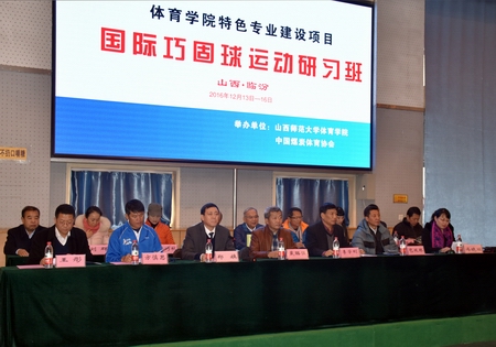 为了加强我院特色专业项目建设,进一步开发体育课程资源,2016年12月13日-16日,“国际巧固球运动研习班”在我院篮球综合馆举办。中国煤炭体育协会主席戴璐强,副主席兼秘书长包双林,国际巧固球总会秘书长、国际巧固球A级教练兼教练班导师方慎思,台湾巧固球协会常务理事兼裁判长黄春华,台湾巧固球协会监事、国际级A级裁判陈原弘,澳门君子球(巧固球)协会秘书长、国际级裁判徐东东,巧固球国际级裁判潘荣庆、李吉慧、陈巧秋、刘群、李燕,院领导李学刚、郑旗、王彤、冯晓丽出席了开班仪式,仪式由副院长冯晓丽主持。太原、大同、临汾部分高校、中小学教师,校教育创新实验区(晋城)的领导和教师以及我院球类项目教师、2016级硕士研究生、体育教育系三年级学生参加了研习班。